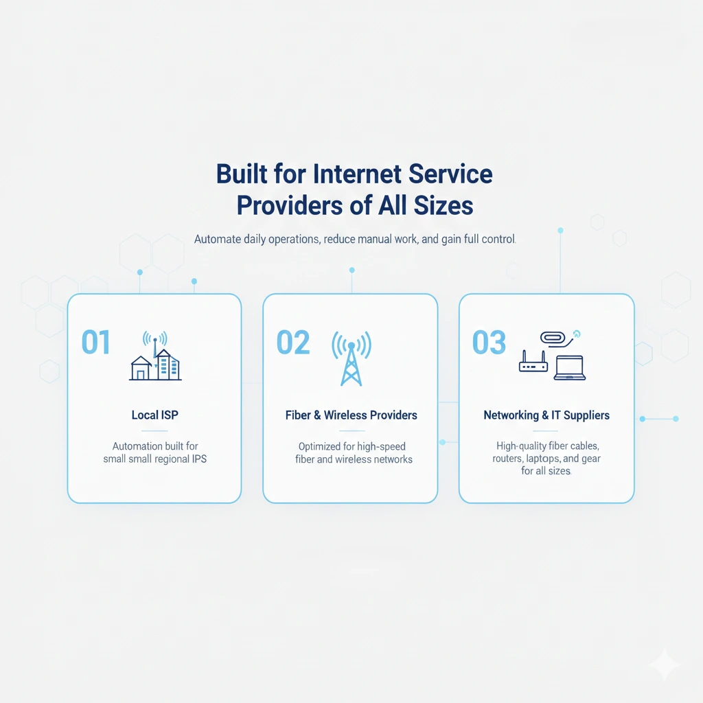 All systems work together to reduce manual effort and scale ISP operations.